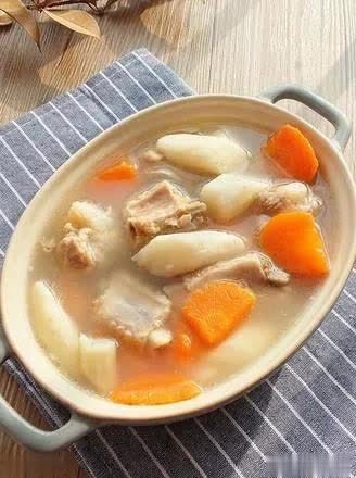 材料:排骨 300克;山药 200克;胡萝卜 1根;生姜 适量;大葱 适量;盐 适量;料酒 适量;清水 适量